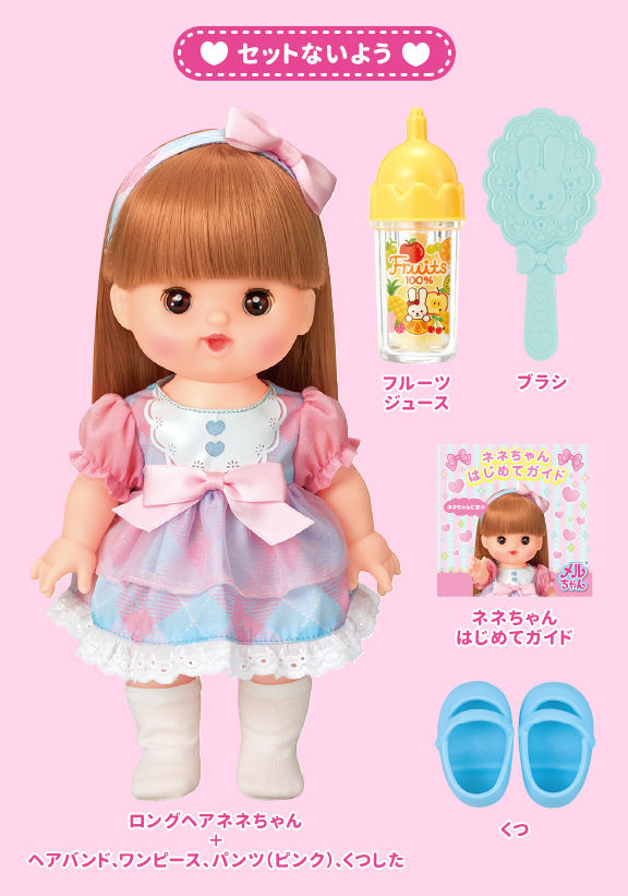 子どもたちに大人気の着せ替え人形といえば、「メルちゃん」シリーズ。「メルちゃん」と「ネネちゃん」です。