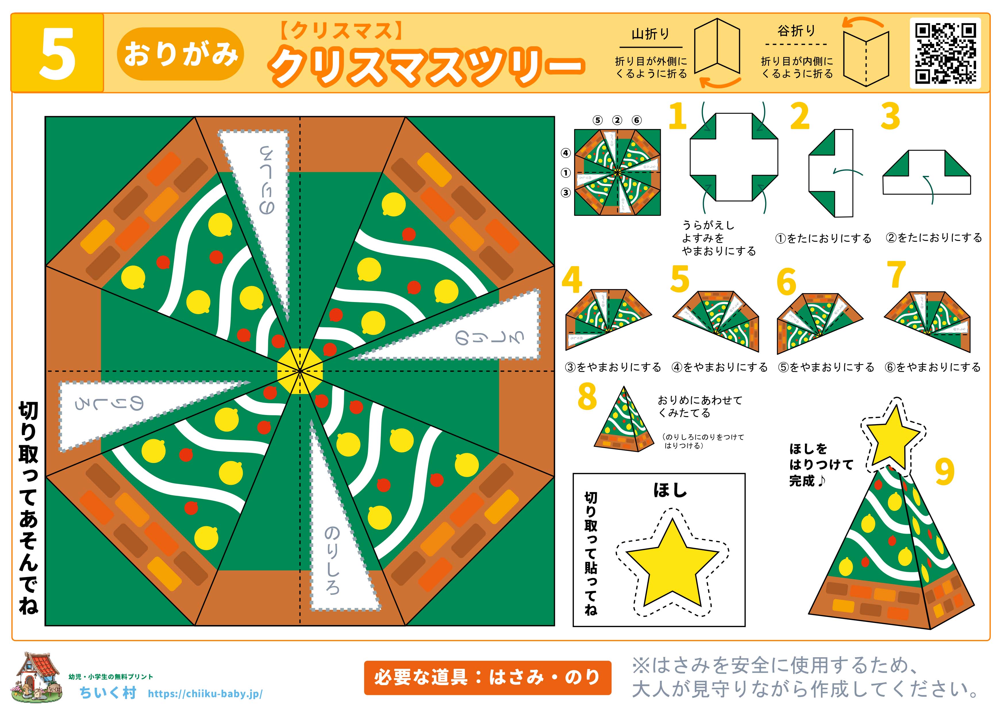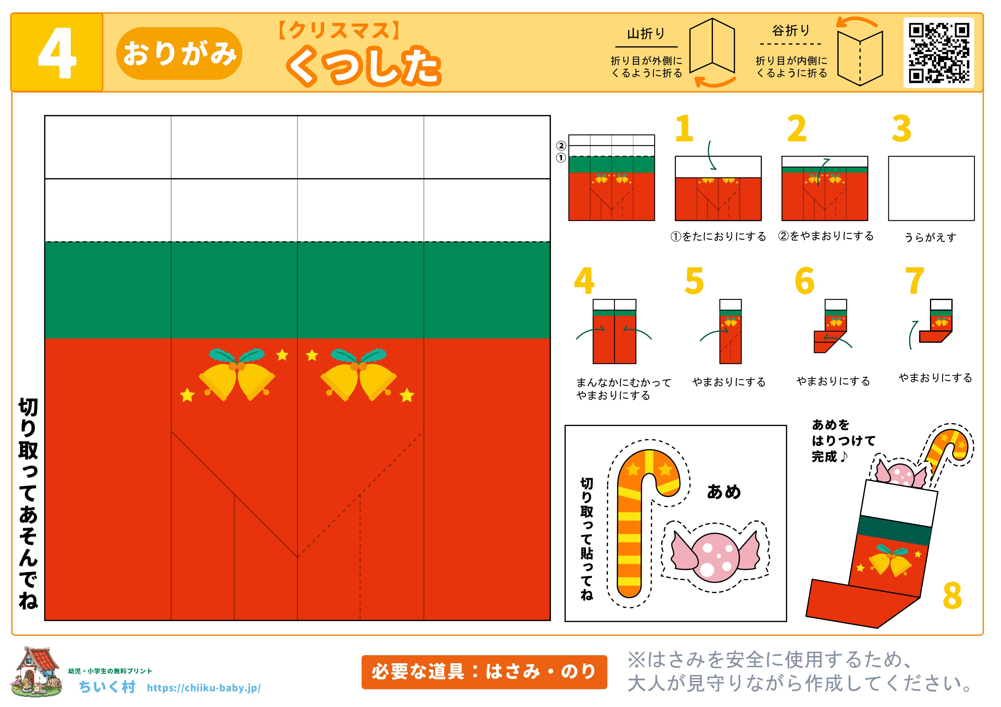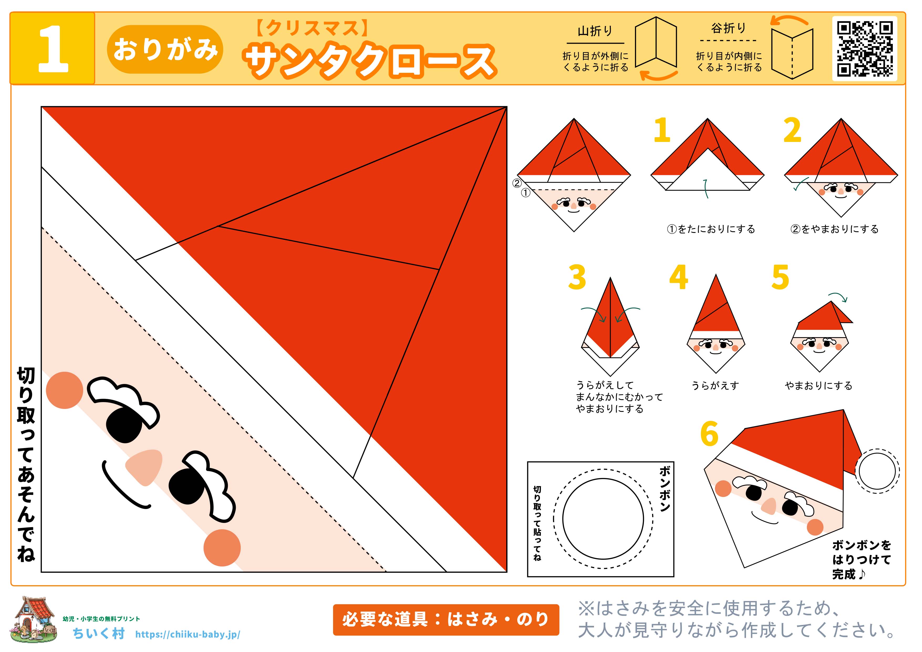 幼児・小学生向けのクリスマスの折り紙(おりがみ)プリント無料ダウンロード