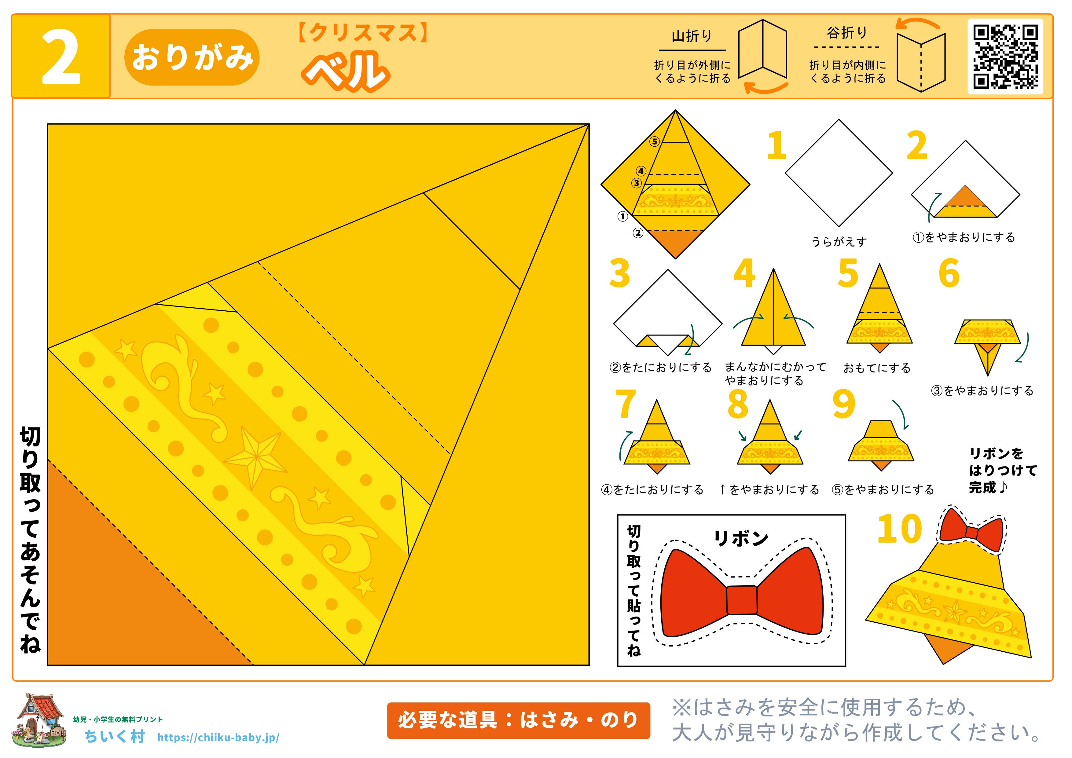 幼児でもできるクリスマスの折り紙(おりがみ)3つ目は、ベルです。