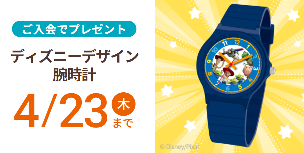 小学生コースに入会した場合は、ディズニーデザインの時計がプレゼントされます。
