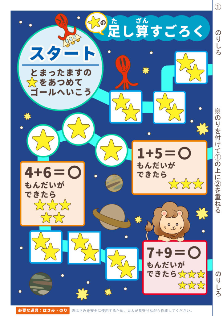簡単な足し算をしながらゴールを目指す知育すごろくです。