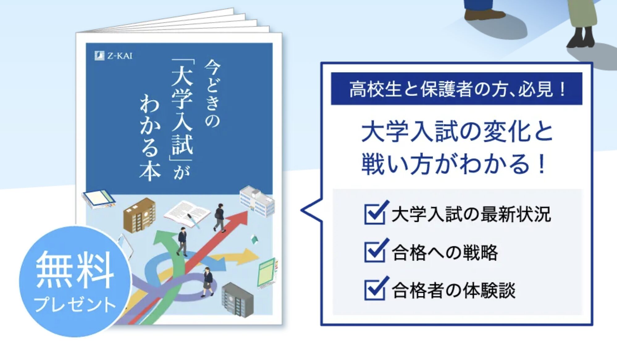 Z会高校生コースの主なキャンペーンは資料請求で受験対策に関する冊子がもらえることです。入試に向けた具体的な対策のヒントや戦略が紹介されています。